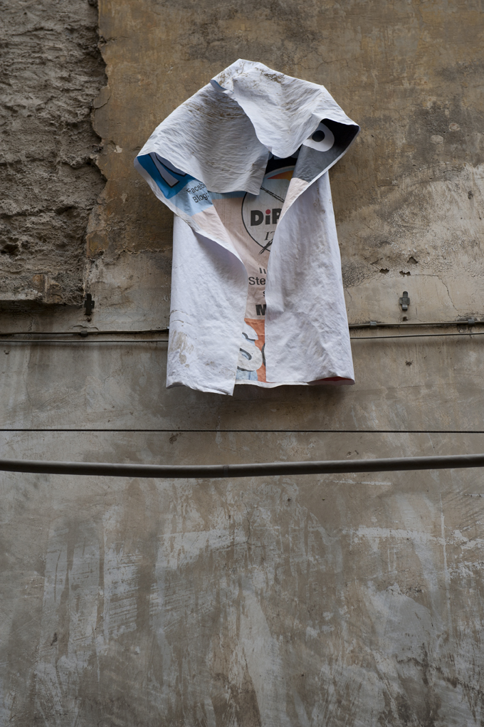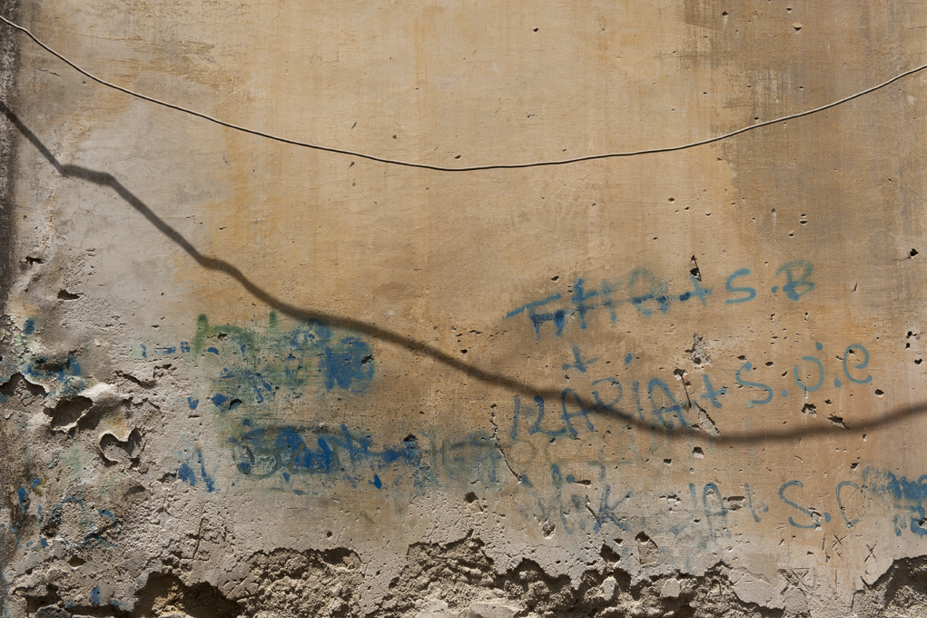 I started wandering the street with a different motivation so my gaze was was adjusting swiftly and in the course of a few days a visual strategy became clear to me. It’s the peoples interactions with their surrounding that became more and more the focus so I embarked on a journey to discover the hidden details (but yet obvious) of a defined urban area or street in this case. Even though the radius was so narrow, the expansion of the space was radical in a way, walking along Via Miracoli and looking at or into (almost) every little corner, crack or nail on the wall, etc. The reactions of the people were accordingly curious and funny, by now they knew who I was and what I was doing, but the fact that I was making photos of nail in a wall was not “normal” in their view… One might argue, rightly so.. Hence the photos became abstract, portraits of cracks, plastic tubes, pencil writing and wires creating ornaments on a wall… all this became increasingly interesting. Peter Fraser’s book EVERYDAY ICONS is a great source of inspiration in that regard and reassured me that I am not (entirely) on the wrong track..! I had regular up and downs regarding the content of the photos and was concerned of what the response of my tutors will be…